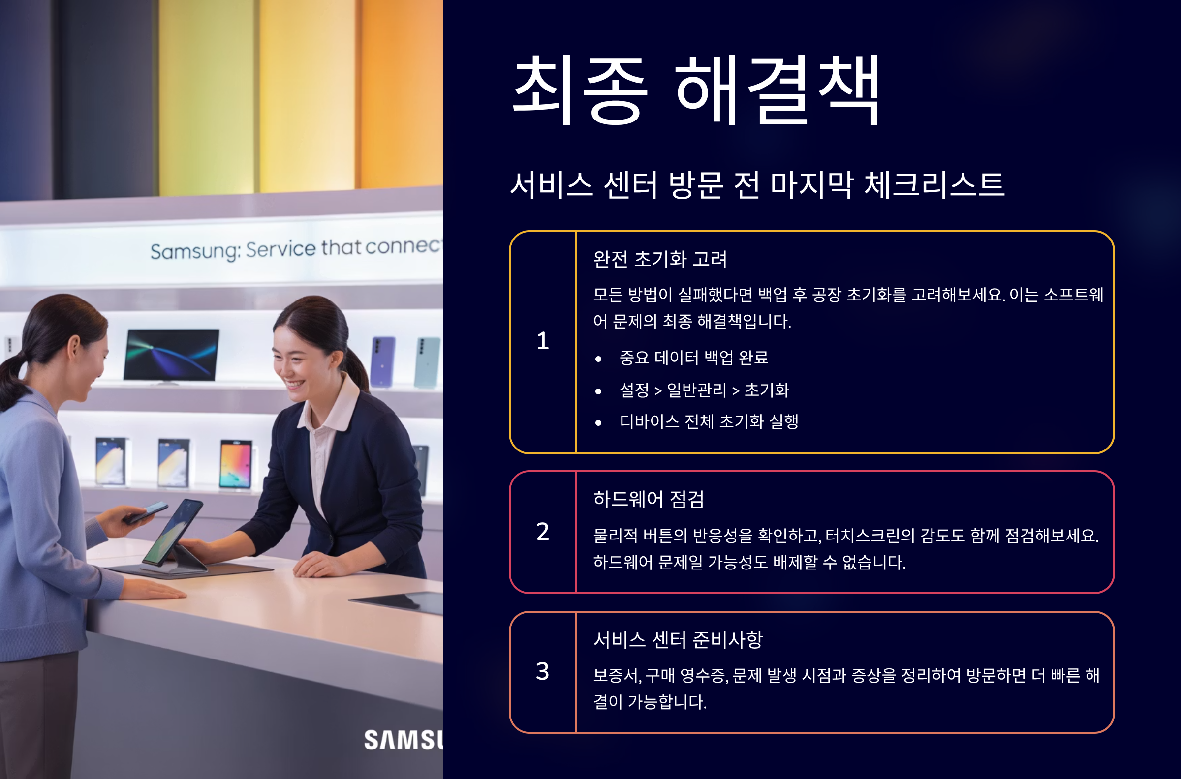 Q: 갤럭시 캡쳐 안 될 때, 공장초기화 말고 다른 최종 해결책은 없나요?
